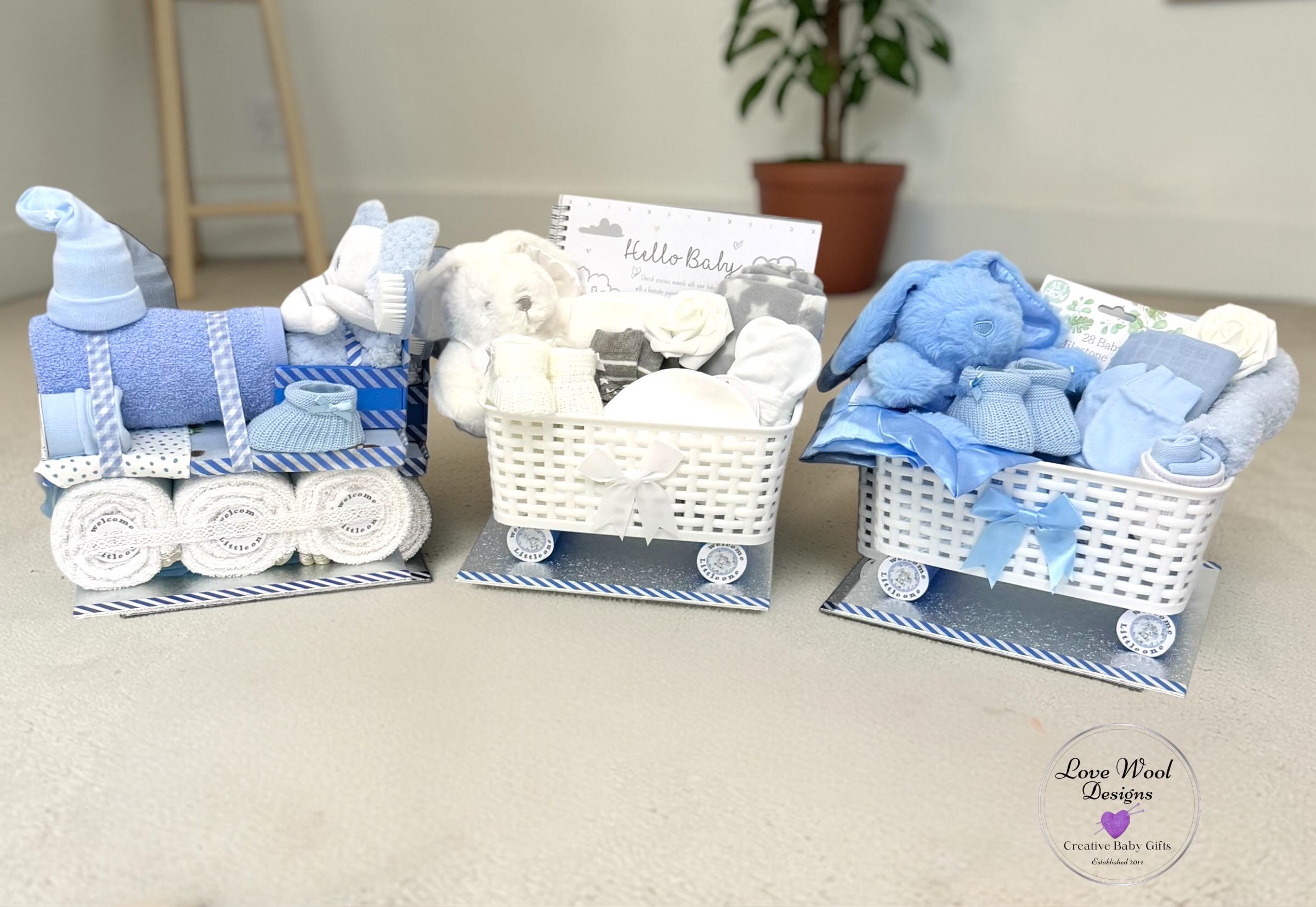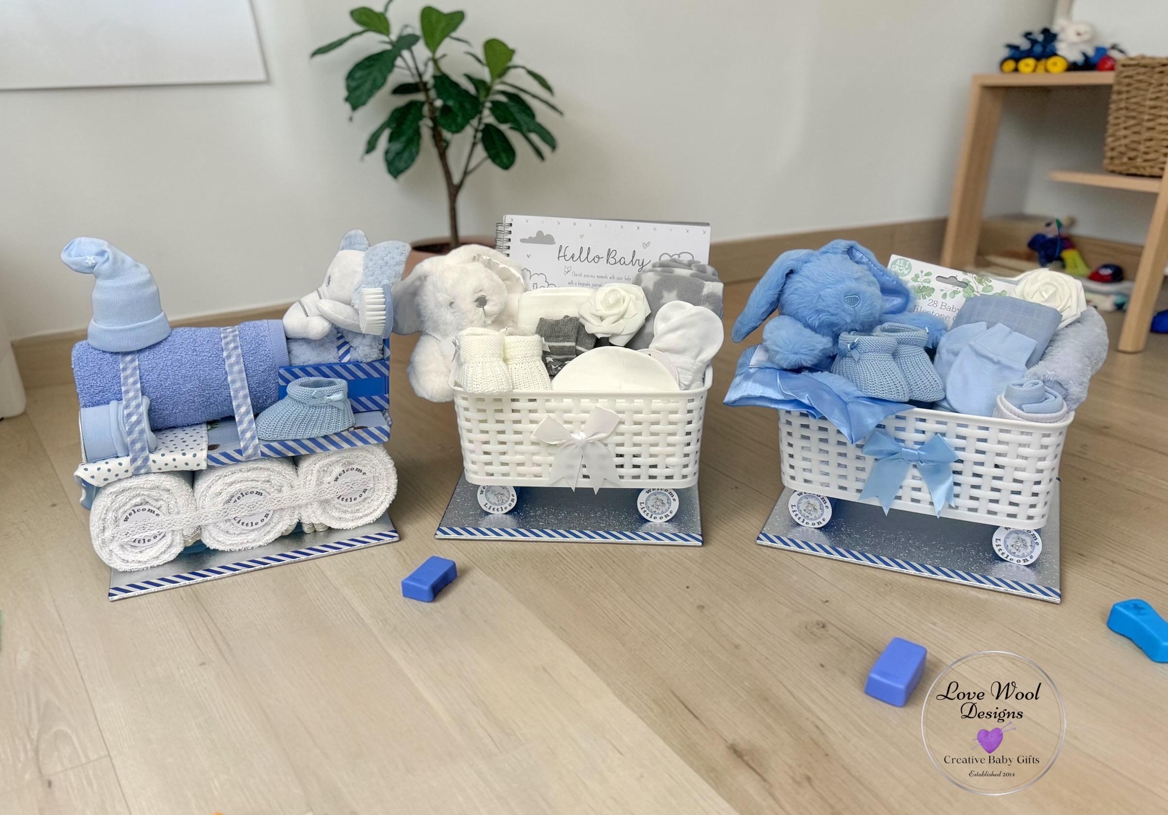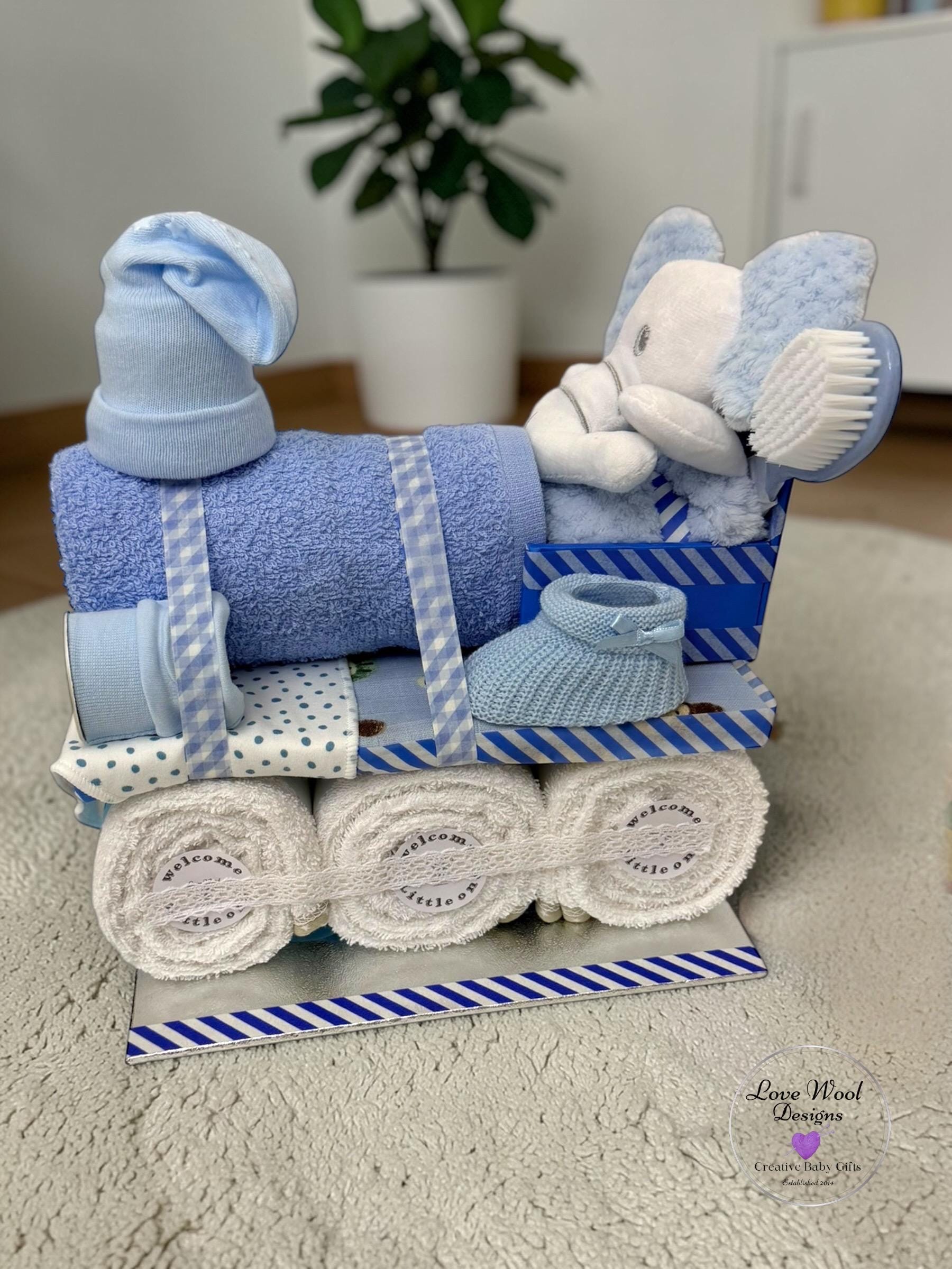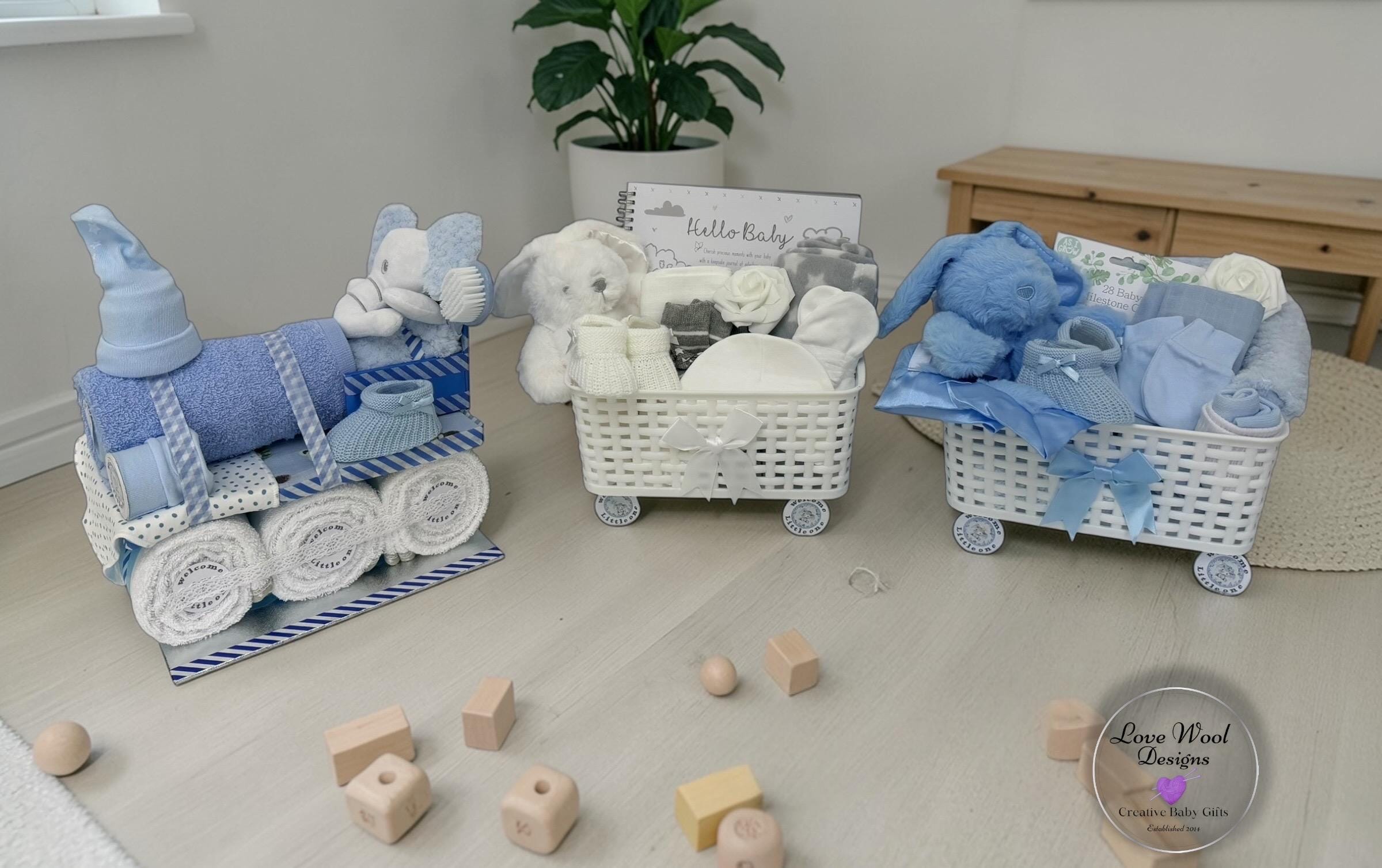 Instead of stuffing this hamper with nappies, I decided to pack it with practical newborn essentials, this train hamper looks stunning as a stand alone piece or with additional hamper carriages which are available to purchase if required.