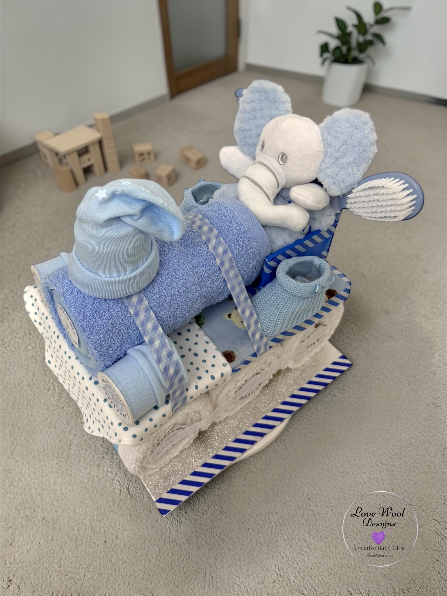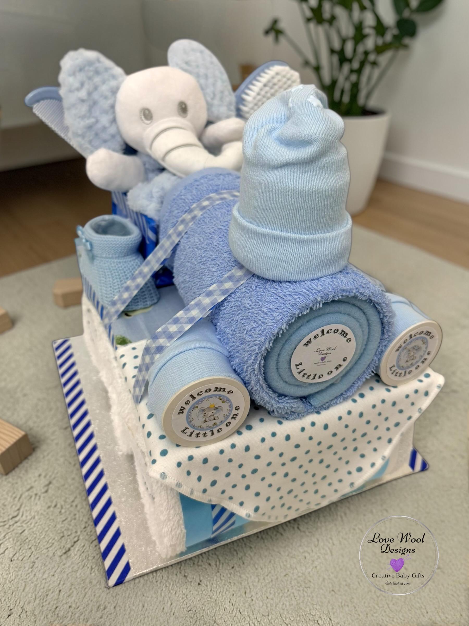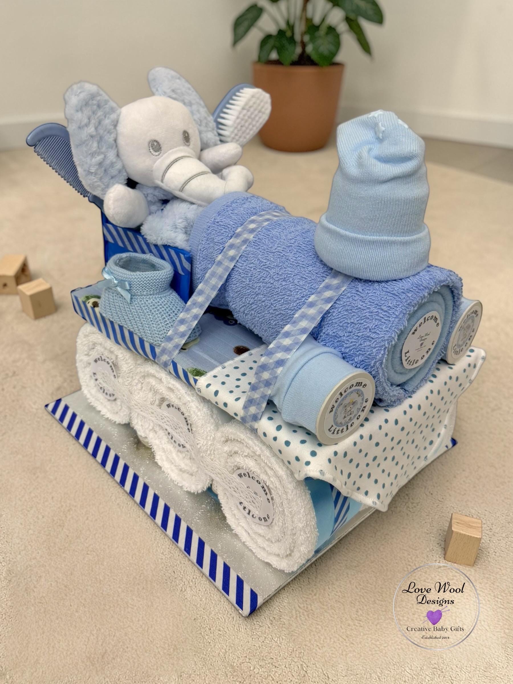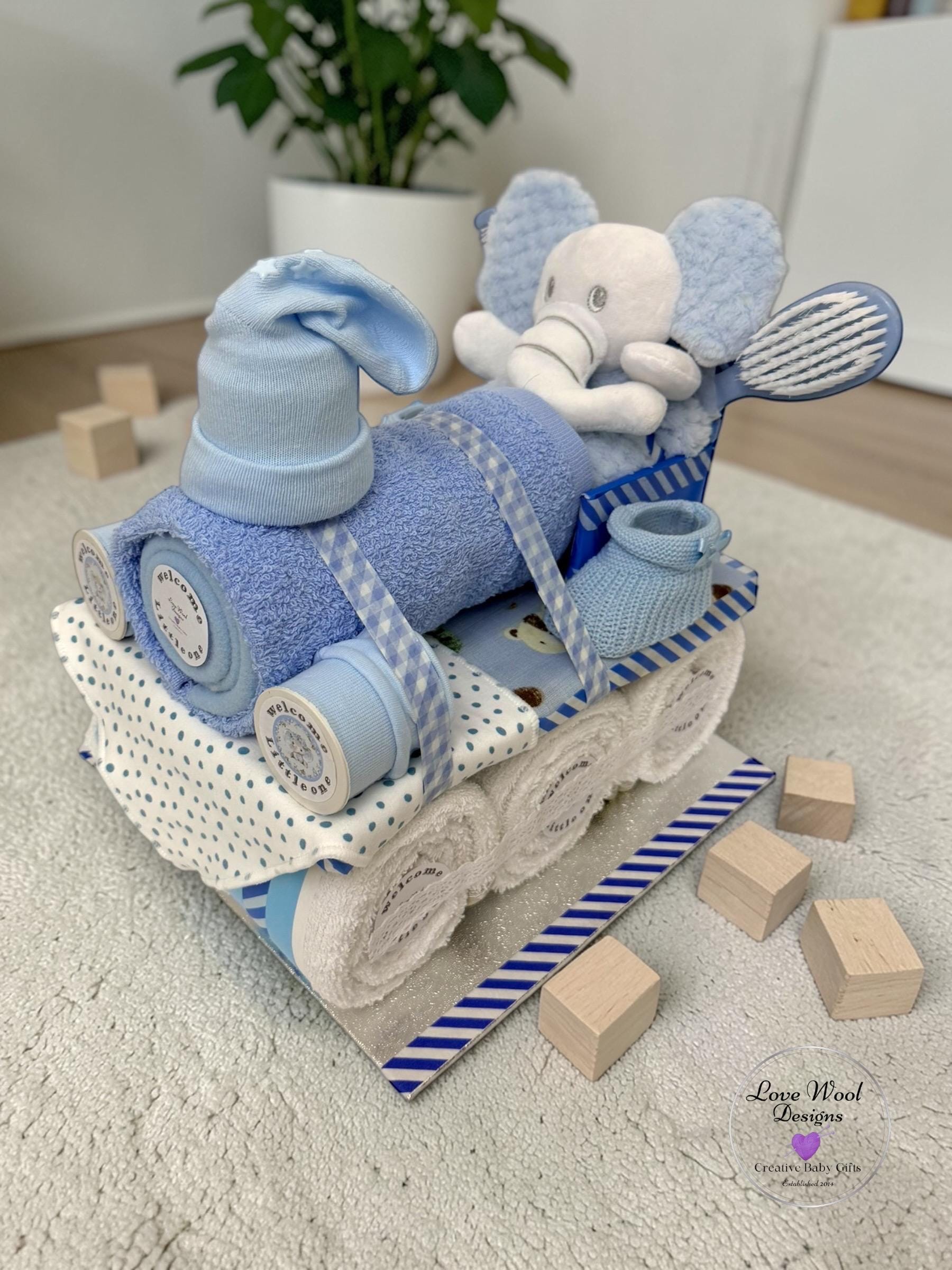 Instead of stuffing this hamper with nappies, I decided to pack it with practical newborn essentials, this train hamper looks stunning as a stand alone piece or with additional hamper carriages which are available to purchase if required.
