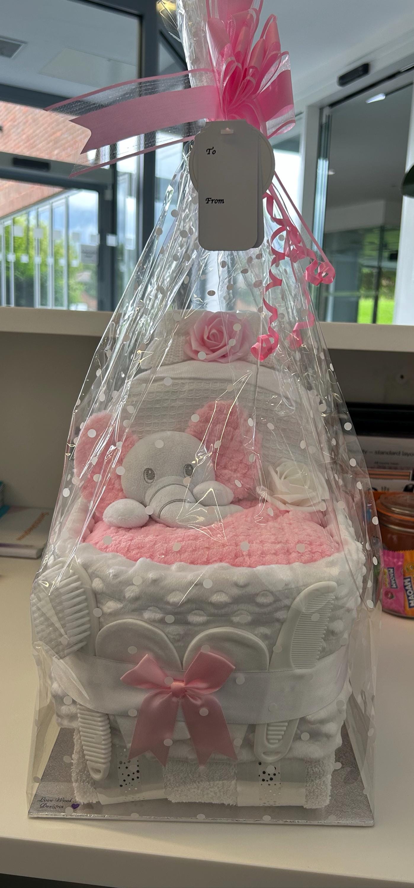2 Soft hooded baby bath towels (rarely found in other sellers’ nappy cakes)