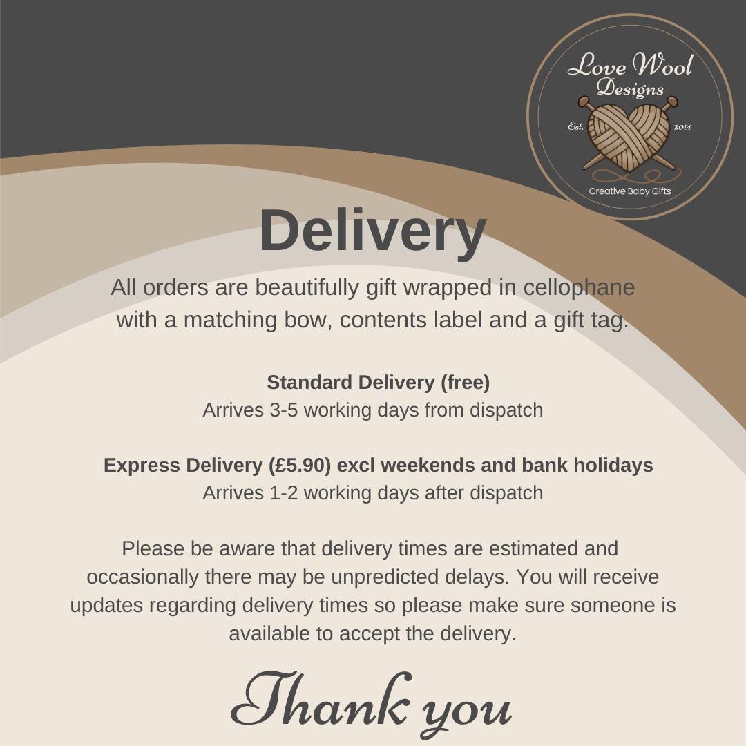 Each nappy cake is made to order but this will not affect delivery times stated.