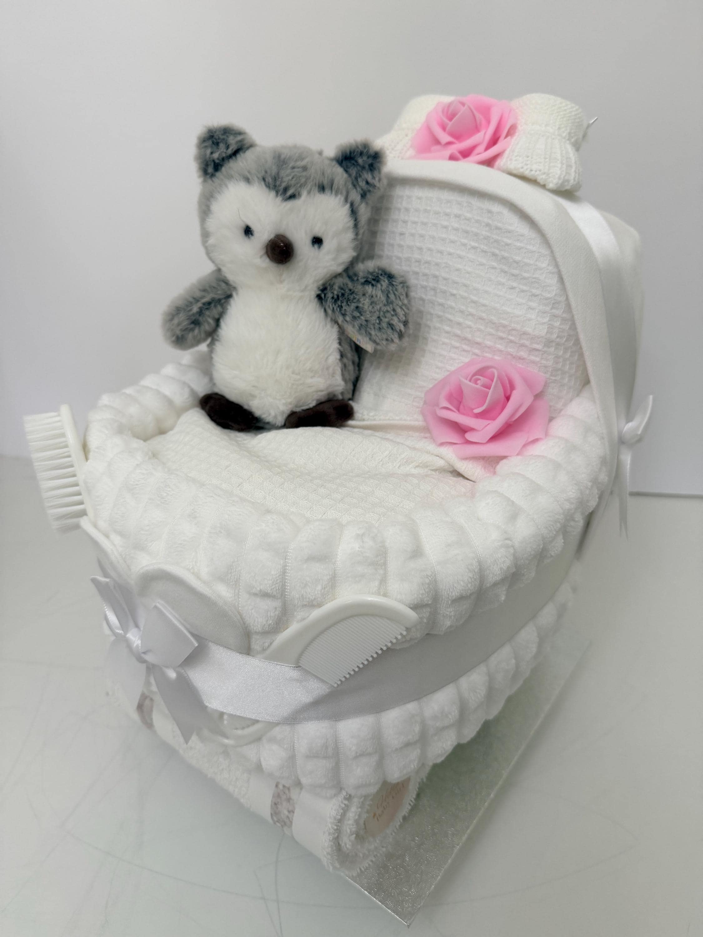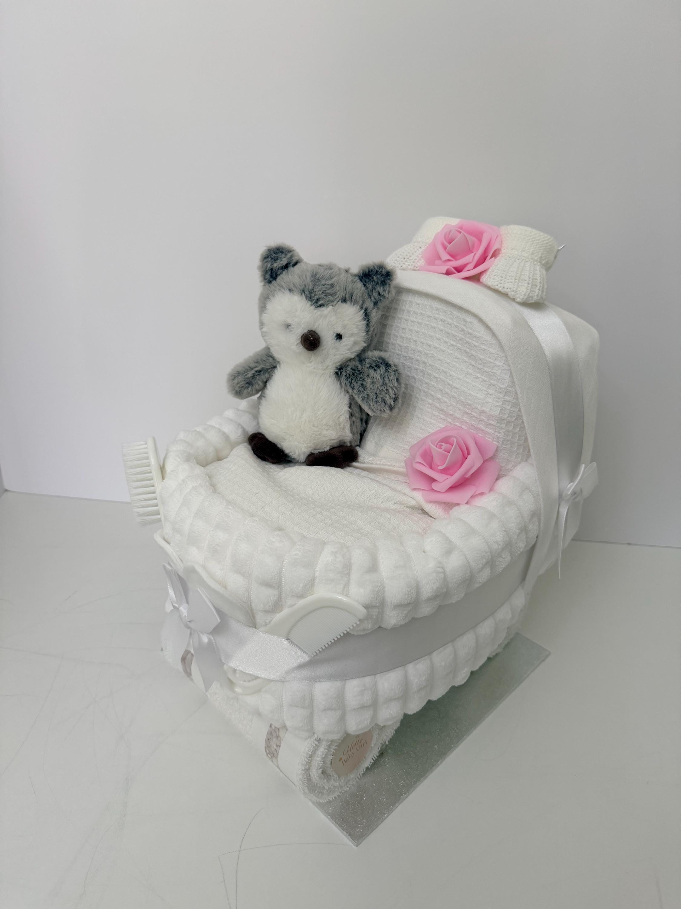 2 Soft hooded baby bath towels (rarely found in other sellers’ nappy cakes)